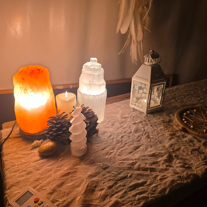 “המקדש” שלנו הוא לא רק פריט עיצובי עוצר נשימה; הוא תחנת כוח של טיהור אנרגטי. המנורה משלבת את התדר הגבוה של הסלנייט עם אלמנט האור, מה שמעצים את יכולת הניקוי של הקריסטל ומפיץ שלווה בכל פינה בחדר.
