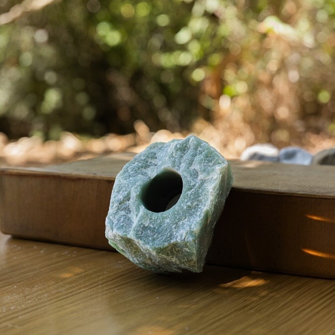פמוט לנרות מאבן אוונטורין טבעית-גולמית מברזיל.